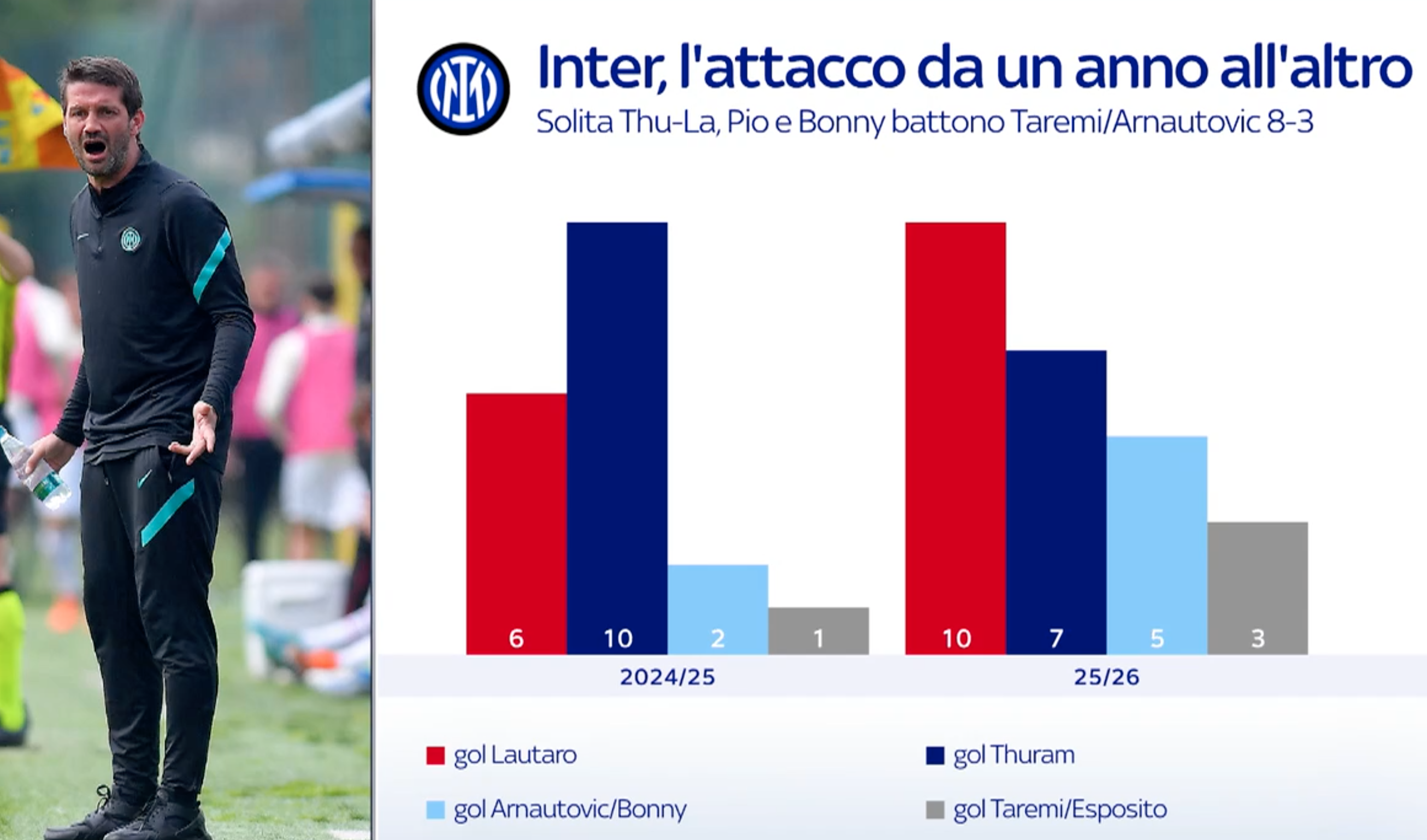 Dei cinque gol che l'Inter ha rifilato al Venezia, quattro sono arrivati dagli attaccanti: Thuram (doppietta), Pio Esposito e Bonny. Gli ultimi due sulla carta sono le riserve di Lautaro e Thuram, fin qui hanno avuto un ottimo impatto. La squadra nerazzurra ha confermato l'ottimo rendimento del proprio attacco, che supera nettamente quello dell'anno scorso.
