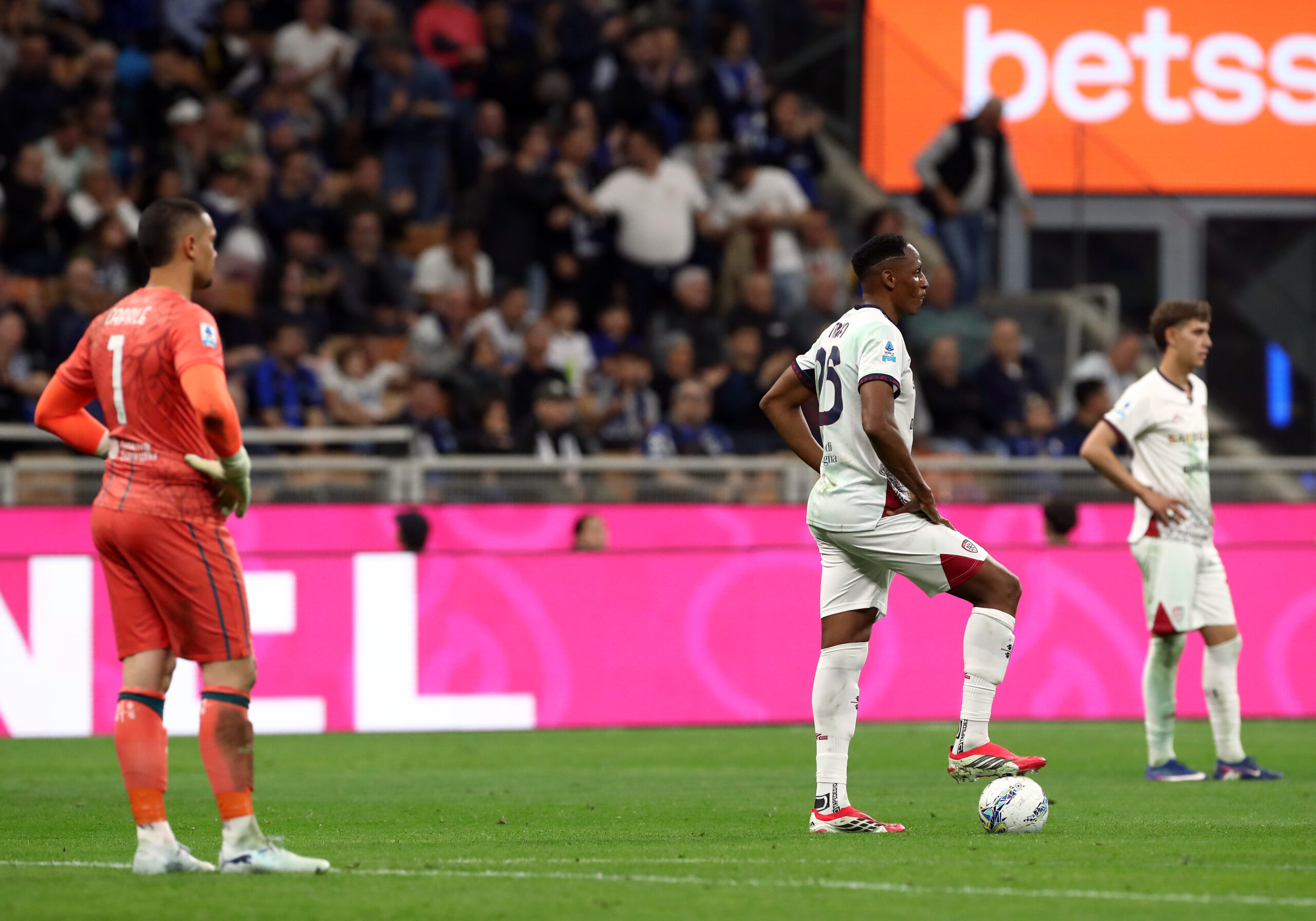 —"Al 40′ rischia grosso Borrelli che, già ammonito, entra duro ancora su De Vrij. Al 51′ brutta entrata di Mina su Thuram: Marchetti fa proseguire per la norma del vantaggio ma lascia il giallo in tasca. Pochi secondi dopo, nell’azione che porta al gol dello stesso Thuram, mette giù Barella nel tentativo di fermare l’azione: anche in questo caso manca il cartellino. E la cosa si ripete anche al 59′, con il difensore del Cagliari graziato per l’ennesimo fallo su Thuram".