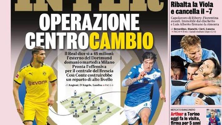 "Inter, operazione 'centrocambio'". La Gazzetta dello Sport parla dei piani del club nerazzurro in prima pagina nell'edizione di domenica 28 giugno. "Il Real dice sì a 45 milioni, l'esterno del Dortmund domani o martedì a Milano. Pronta l'offensiva per il centrale del Brescia. Così Conte costruirebbe un reparto di alto livello".