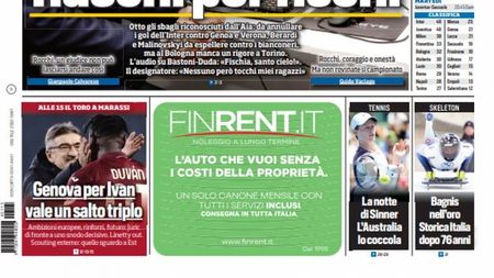 Nella falsa apertura si legge: «Ci siamo rotti». Sono le parole del designatore Rocchi che passa alla tolleranza zero. "Certifica otto errori, poi va giù duro e dice: «Gli arbitri non sono più disposti ad accettare offese e minacce. Orsato e Guida gli ultimi bersagliati»".