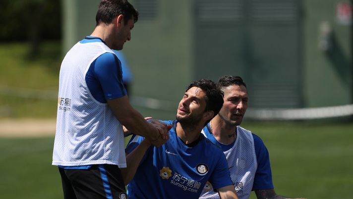 Gli ex nerazzurri si sono allenati con la squadra di Spalletti e per il difensore è stato il momento dei bei ricordi