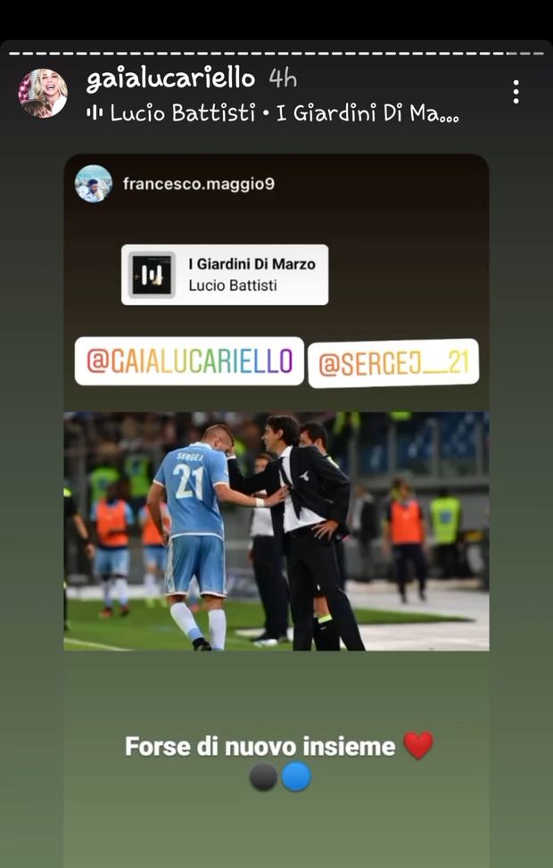 Tra quei post ce n'è anche uno particolare. È la foto dell'abbraccio tra Milinkovic-Savic e il mister. E una frase in fondo al post colpisce: "Forse ancora insieme". Ma sembra una stories che è arrivata da un tifoso nerazzurro. Ci sono i pallini nerazzurri e un cuoricino. Anche quello è stato condiviso dalla signora Gaia. Ed è inevitabile per gli interisti fare dei bei pensieri.