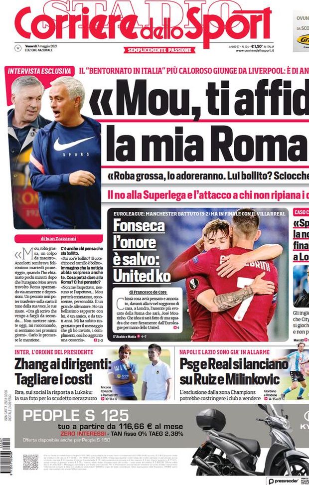 Dalla prima pagina del Corriere dello Sport arrivano conferme sulla linea dettata da Zhangai dirigenti dell'Inter per il futuro. Il titolo scelto dal giornale sportivo è: "Inter, l'ordine del presidente. Zhang ai dirigenti: Tagliare i costi". In prima pagina si parla anche del cappuccino postato da Ibrahimovic come risposta a Lukaku.