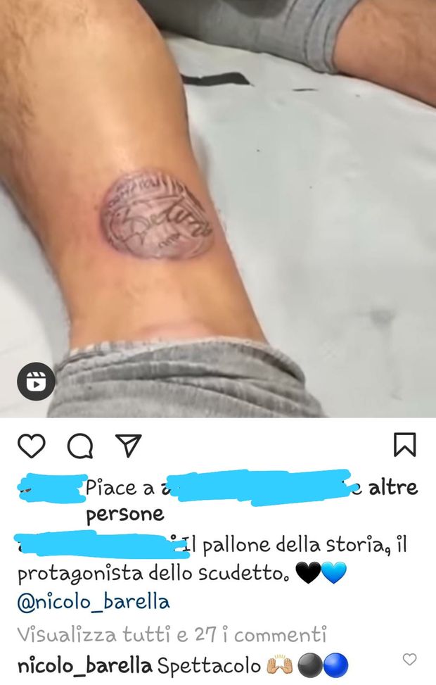Il ragazzo che lo ha raccolto ha deciso di farsi tatuare il pallone che Barella gli ha regalato, con il 19 e la firma, su una gamba e il suo tatuatore ha condiviso sui social un video emozionale che racconta questa storia. Barella ha risposto sotto al post con un commento: "Spettacolo" e due pallini nerazzurri. E il post è stato condiviso anche dalla moglie di Nicolò, Federica, sulle sue stories. "Emozionante", ha scritto lei. Ed effettivamente...