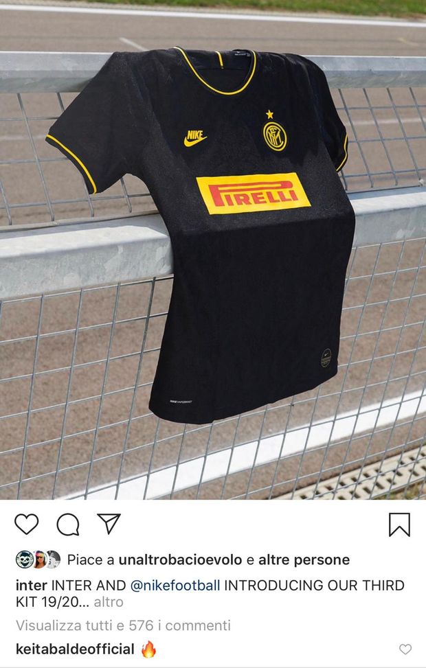 L'Inter ha presentato stamattina ufficialmente la terza maglia per la stagione 2019-20: la divisa racchiude elementi delle maglie iconiche delle stagioni 1997-98 e 2009-10, in cui i Nerazzurri hanno conquistato alcuni dei successi più spettacolari della storia del club. Pubblicata poi la foto del kit su Instagram, è arrivato un commento inatteso: quello di Keita Balde, che ha vestito il nerazzurro la scorsa stagione. Il senegalese, tornato al Monaco, ha commentato con una fiamma il design della divisa, come per dire che è "on fire": segno che l'ex Inter apprezza molto la scelta stilistica del club.