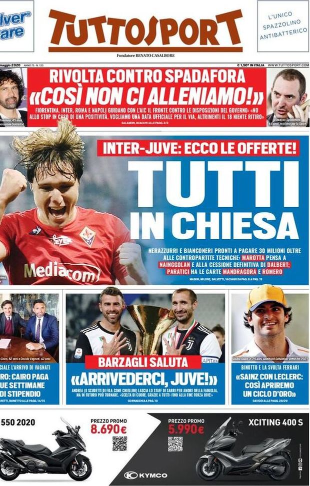 Le polemiche tra Lega e Figc per il protocollo sulla ripartenza, ma non solo. Sulla prima pagina di TuttoSport si parla anche di calciomercato. Questi i titoli principali del quotidiano torinese: