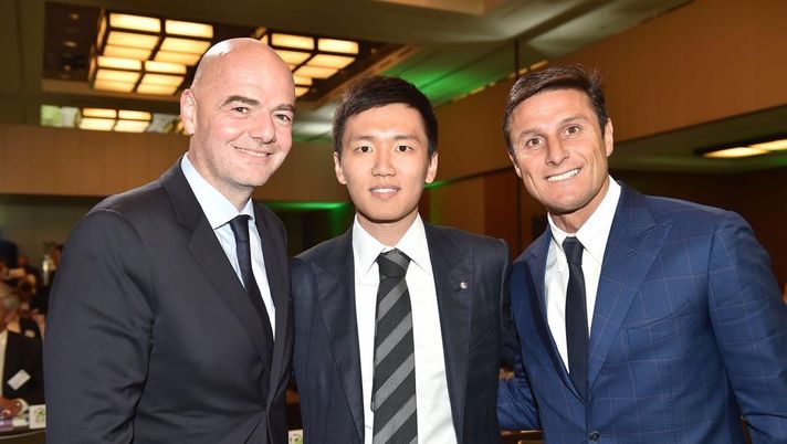 Steven Zhang, Javier Zanetti e Gianni Infantino hanno scattato una foto insieme