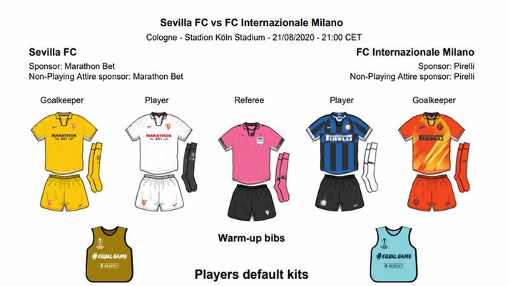 Inter e Siviglia hanno scelto i kit da indossare per la finale di Europa League