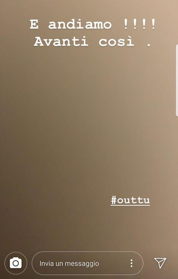 Subito dopo, la storia è stata cancellata e Allegra ne ha postata un'altra con l'hashtag #outtu. Out tu: Out chi?.