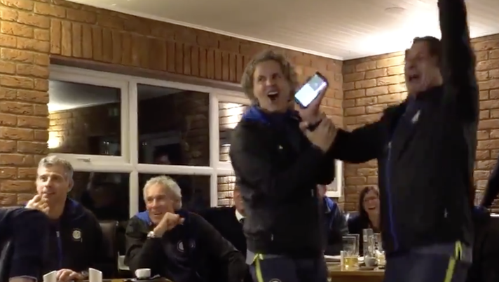 Il gol di Matias Vecino ha scaturito negli interisti una gioia irrefrenabile. In tutto il mondo i tifosi nerazzurri hanno esultato, urlando di gioia al gol che ha riportato ufficialmente l'Inter in Champions League. Non poteva mancare anche l'esultanza delle leggende nerazzurre di Inter Forever, che erano in Inghilterra per le amichevoli contro Chelsea e Norwich. L'Inter ha voluto mostrare ai tifosi la reazione di Nicola Berti e compagni al gol dell'uruguaiano: