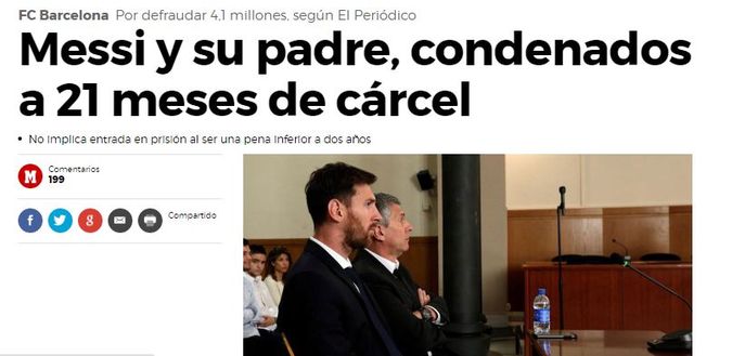 La notizia sta ovviamente facendo il giro di Spagna e Argentina: Leo Messi e suo padre sono stati condannati a 21 mesi di carcere per evasione fiscale, come riporta El Periodico de Catalunya.