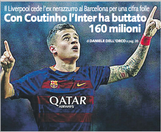 Libero – Con Coutinho buttati 160 milioni. E’ l’Inter la regina dei campioni svenduti