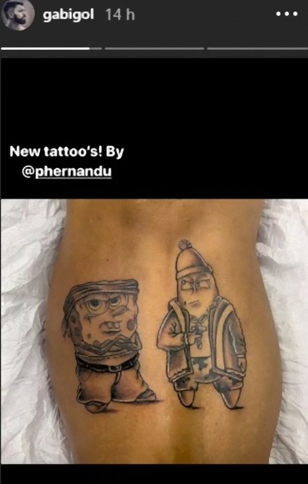 In attesa di conoscere il suo futuro, che certamente non sarà all'Inter, come confermato ieri da Piero Ausilio, Gabigol, prima di tornare in Europa, ha pensato bene di aggiungere alla sua schiera un nuovo tatuaggio, questa volta davvero "particolare". Sulla gamba, infatti, l'attaccante brasiliano, che tornerà presto dal prestito al Santos, ha deciso di tatuarsi Spongebob e il suo amico Patrick. Ecco l'ultimo "capolavoro":