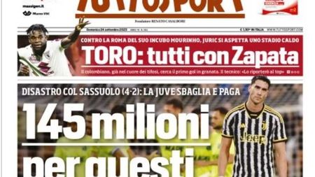 "Mai dire Juve". Questo il titolo principale del Corriere dello Sport in edicola oggi che parla principalmente della sconfitta bianconera contro il Sassuolo per quattro a due. Se nelle scorse ore si era parlato della possibilità dei bianconeri di prendersi il primo posto, questo è quanto viene scritto dopo quanto successo a Reggio Emilia. "La topica di Gatti segna un ko alla Gialappa's col Sassuolo. Una papera di Szczęsny e un errore del difensore condannano Allegri. Non bastano Chiesa e un autogol di Vina. Decidono Laurenté, Berardi e Pinamonti". Max: «Partite così capitano una sola volta all'anno».