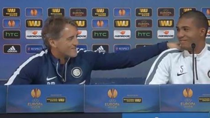 La sedia è troppo alta, lui prova ad abbassarla, ma poi diventa troppo bassa e Juan Jesus, lì al suo fianco, sembra quasi un gigante: il calciatore si sente in imbarazzo e decide di abbassare la sedia alla stessa altezza. Adesso sono di nuovo allineati nell'inquadratura. Ride Mancini, di se e della situazione, ridono anche i giornalisti presenti in sala.