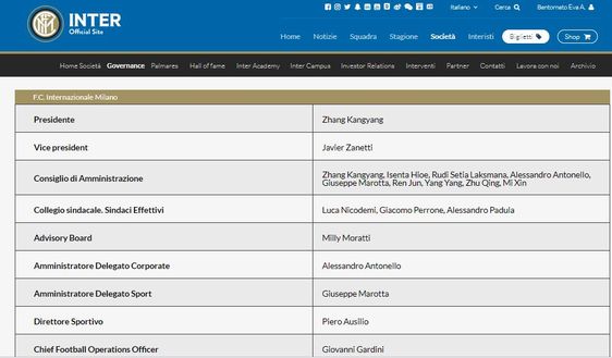 Su inter.it è stato aggiornata la voce che riguarda l'organigramma societario: è l'ultimo pezzetto che si incastra in questa prima giornata di lavoro del nuovo ad