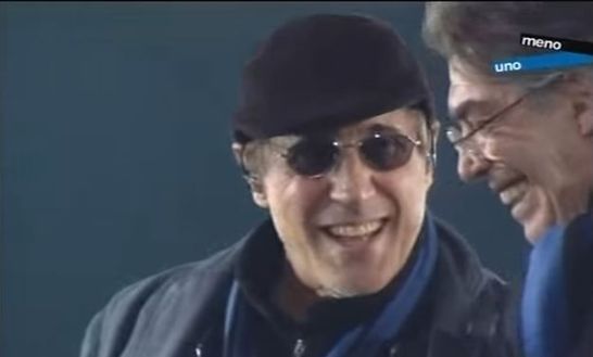 Chiacchiere libere sulla squadra del cuore delle due leggende della canzone italiana. I due si chiedono se il giorno prima ha giocato il club nerazzurro. Mina ha anche inciso una versione di "Parole parole" insieme a Javier Zanetti, allora capitano dell'Inter. Celentano aveva anche cantato alla festa per il centenario della società ed era stato al Meazza ospite di Moratti con cui aveva cantato sul prato verde dello stadio: "Ora sei rimasta sola, piangi e non ricordi nulla...". Il cantante aveva raccontato di un derby amoroso ("eravamo in centomila allo stadio quel di'