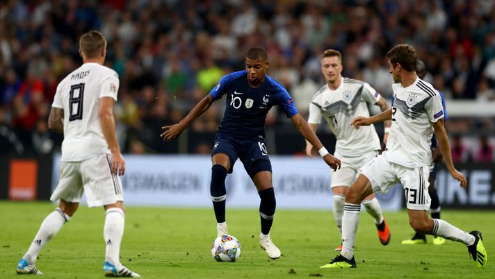 In Germania-Francia, partita finita 0-0, ancora una volta Kylian Mbappé ha messo in mostra tutte le sue qualità: dribbling, velocità e numeri che i tifosi tedeschi hanno apprezzato. Thomas Müller è rimasto impressionato dal giovane francese: "Ha un motore nel sedere che chiunque altro vuole avere (ride, ndr). Ha fatto cose che piacevano al pubblico durante la partita. Con uno scatto lascia il suo avversario dietro di lui. Devi difendere con almeno due giocatori. Così, se supera un giocatore, ce n'è un altro per fermarlo. È l'unico modo per fermare grandi giocatori come lui", ha detto l'attaccante del Bayern Monaco.
