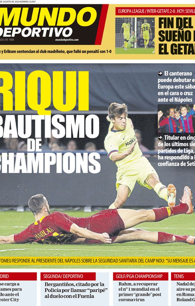 "Fine del sogno per il Getafe: Lukaku ed Eriksen stendono il club madrileno, che ha sbagliato un rigore sull'1-0". In prima pagina il Mundo Deportivo parla del successo dell'Inter di Antonio Conte sulla squadra di José Bordalas.