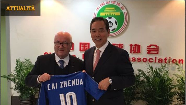 Non solo Inter e Milan. Anche la Figc è legata alla Cina e questa mattina, a Pechino, è stata rinnovata la convenzione la Federazione Italiana e la Federcalcio cinese. Il presidente federale Carlo Tavecchio, accompagnato da Renzo Ulivieri - presidente dell'Associazione Italiana Allenatori e direttore della scuola allenatori di Coverciano - ha incontrato Cai Zhenhua, presidente della Federcalciocinese rinnovando la convenzione dei due Paesi e la collaborazione che riguarda esperienze tecnico-organizzative e vari progetti di sviluppo.