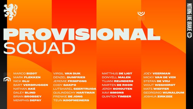 Nella lista provvisoria compaiono sia Denzel Dumfries sia Stefan de Vrij.