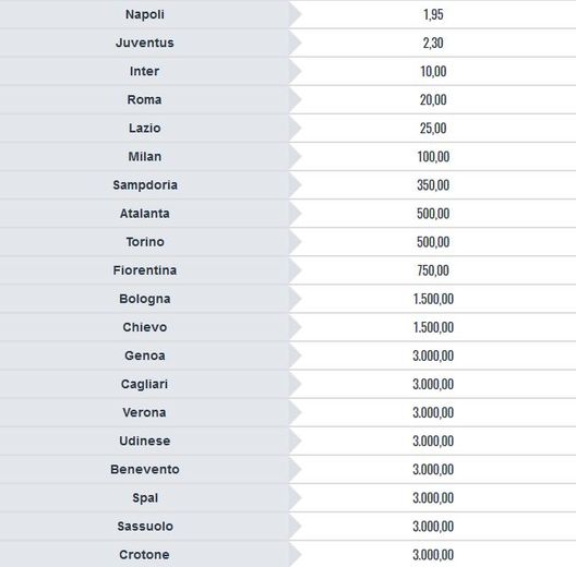 I bookmakers stilano la loro classifica sulla vincente della Serie A
