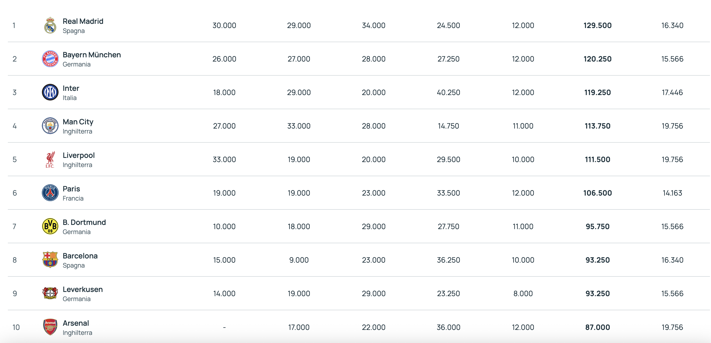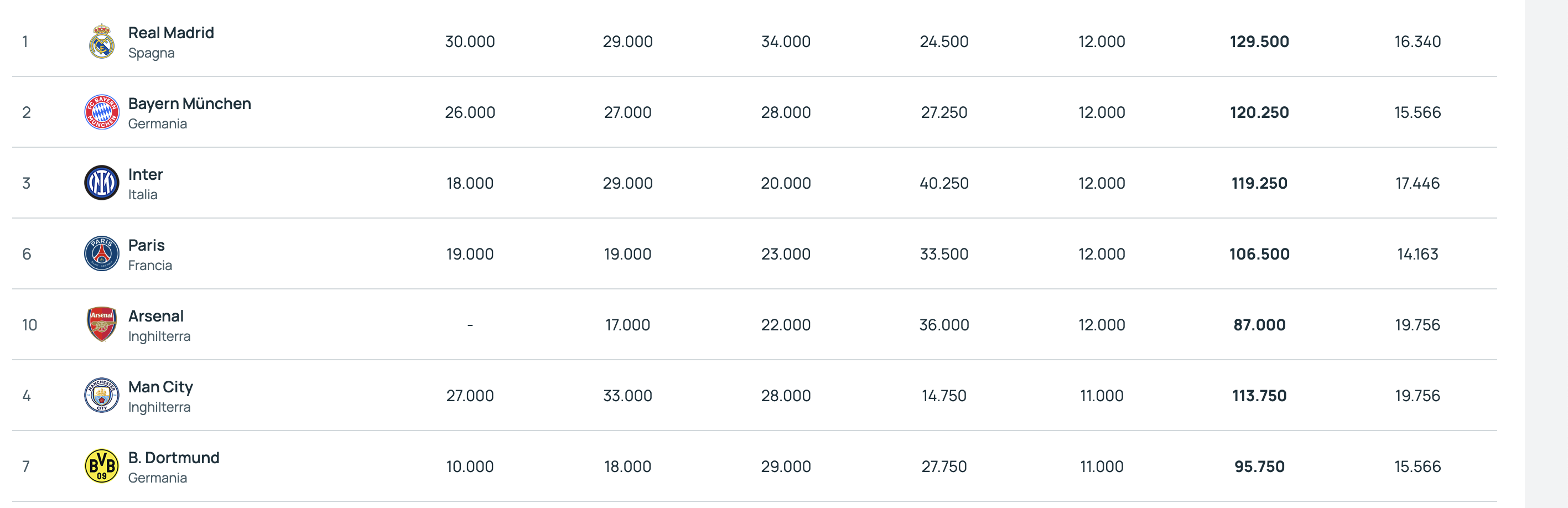 Si è giocata la seconda serata del terzo turno di Champions League. La Uefa ha aggiornato il Ranking per club, in attesa delle gare europee di questa sera, tra Europa League e Conference League. Il Bayern vince e torna al secondo posto, scavalcando l'Inter. I nerazzurri mantengono saldamente la terza posizione tenendo a debita distanza il Manchester City.