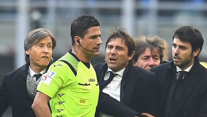 "L'exploit di Lautaro è stato solo l'apice di una domenica da crisi di nervi in casa nerazzurra. L'episodio è avvenuto a metà recupero e, dopo 2', l'arbitro ha fischiato la fine. A quel punto, con l'animo infiammato, è "partito" Conte, con Manganiello, evidentemente, nel mirino. Da capire cosa verrà scritto nei referti, ma a questo punto anche il tecnico leccese rischia uno stop. Verrà squalificato pure il terzo portiere Berni, troppo agitato ed espulso a partita finita. Il direttore di gara, quindi, è stato scortato fino al tunnel, mentre tutto San Siro fischiava e gli inveiva contro, dopo aver già insultato pesantemente Ibrahimovic. A gara in corso, le immagini tv hanno anche mostrato, dopo una protesta a bordo campo, uno sputo di Ranocchia, ma comunque a distanza di sicurezza dal quarto uomo, che infatti non se n'è accorto".