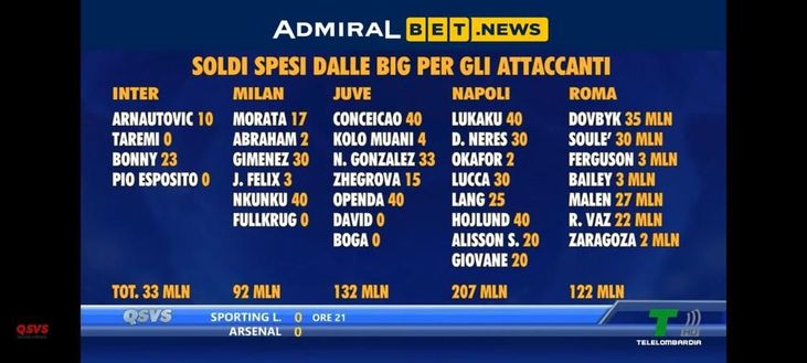 fcinter1908 ultimora Serie A, classifica soldi spesi per l’attacco: differenza abissale tra Inter e le altre