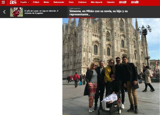 Simeone, la foto di famiglia a Milano in Piazza Duomo fa notizia sui giornali spagnoli