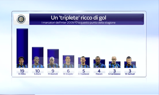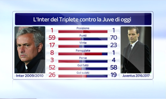 Sul canale sportivo sono passate diverse tabelle per mettere a confronto la squadra di Mourinho del 2010 con la formazione di Allegri