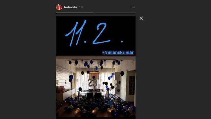 Gli ha organizzato una festa a sorpresa e ha trovato tutta la casa colorata di nerazzurro quando è tornato dallo stadio, dove aveva giocato da titolare, al centro della difesa, Inter-Bologna. Milan Skriniar ieri ha compiuto 23 anni e ha raccontato di essere felice per il regalo che gli ha fatto la sua fidanzata, Barbora: palloncini neri e azzurri, la torta con la foto e lo stemma dell'Inter e amici insieme a loro, il compleanno a quel punto è stato servito. Lei oggi pubblica la fotografia della festa e scrive i suoi auguri al fidanzato mostrando anche ai suoi follower l'atmosfera che si respirava ieri a casa loro.