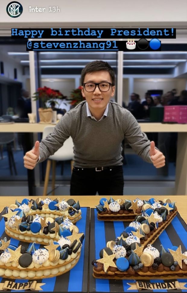 Inter, il presidente Steven Zhang compie 28 anni: torta speciale e nerazzurra per lui