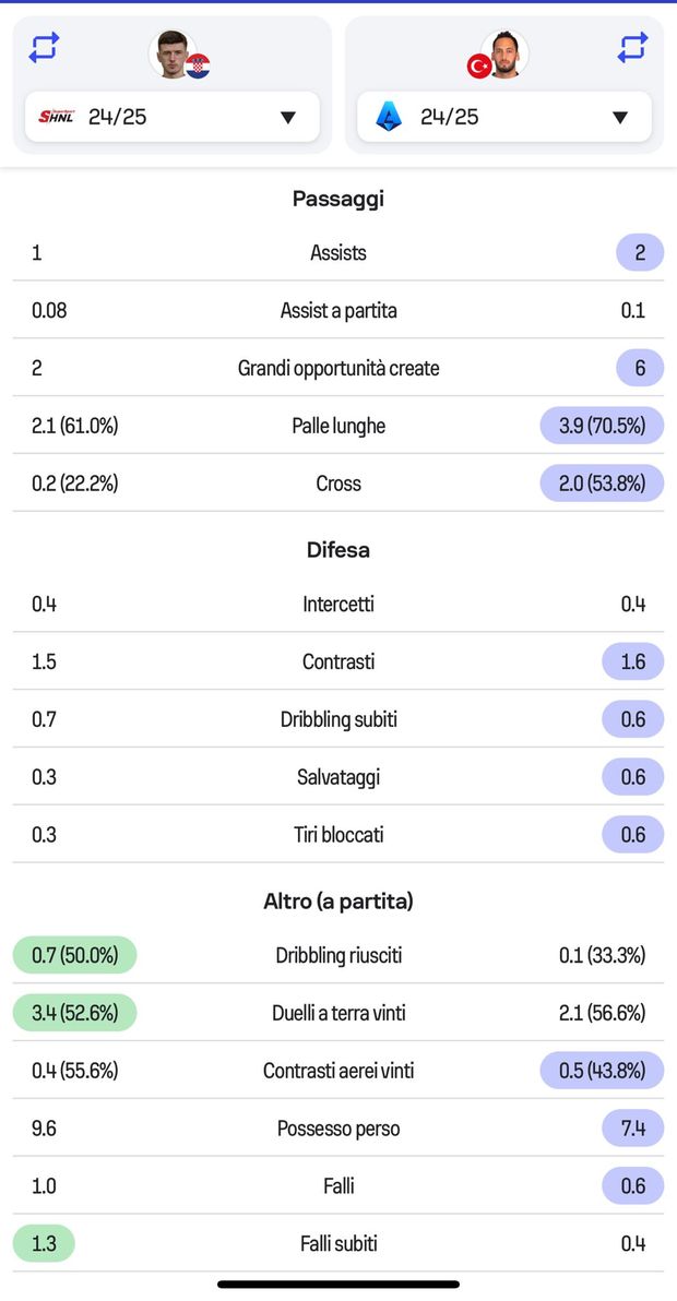 Il dato importante riguarda la fase difensiva che è uno dei punti di forza del turco e che maggiormente l'Inter ha rimpianto quando era assente. E il dato rassicura i tifosi nerazzurri: Sucic si avvicina molto al regista interista: stesso numero di intercetti, praticamente uguali i contrasti e i dribbling subiti. Da aggiungere anche che il centrocampista della Dinamo ha anche il dribbling tra le sue caratteristiche.