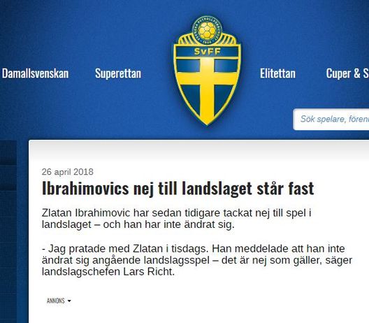 Aveva spiazzato tutti, era diventato un caso nazionale e non solo. Zlatan Ibrahimovic aveva annunciato il ritorno in Nazionale per i Mondiali in Russia, ma la Federazione svedese, in un comunicato pubblicato sul sito ufficiale, ha invece spiegato che Ibra non sarò convocato dalla Nazionale perché l'ha lasciata un anno fa e non ha cambiato idea. "Ho parlato con Zlatan martedì, non ha cambiato idea sul ritiro dalla nazionale: quindi non sarà ai Mondiali", ha spiegato il ds della Svezia Lars Richt.