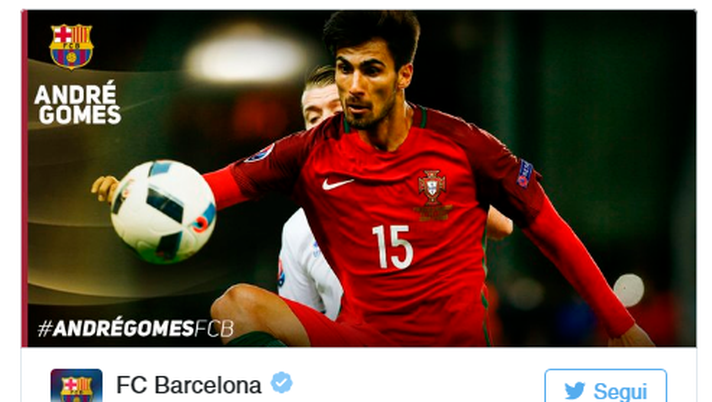 Colpo di scena dalla Spagna! Con un blitz improvviso il Barcellona brucia Real Madrid e Juventus e annuncia l'accordo con il Valencia per l'arrivo di Andrè Gomes. Ad annunciare il colpo di mercato è il profilo Twitter del Barcellona: