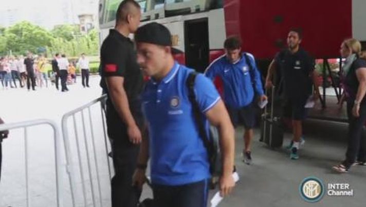 I giocatori dell'Inter, arrivati nel loro albergo a Shanghai, sono stati accolti dal calore non solo climatico ma anche dei tifosi, che hanno urlato e cantato per i nerazzurri, con l'immancabile coro "Chi non salta è rossonero".
