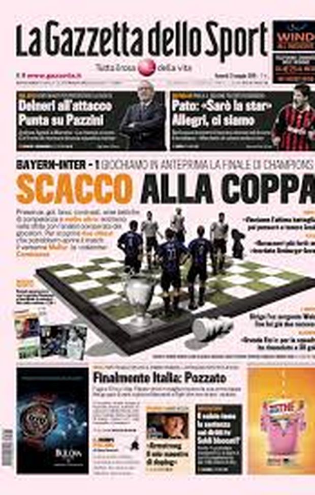 La Gazzetta dello Sport, in edicola il 21 maggio 2010, si atteneva ad una analisi comparata dei giocatori delle due squadre in finale, quella in edicola oggi appare nettamente più ottimista sul risultato dell'italiana in finale