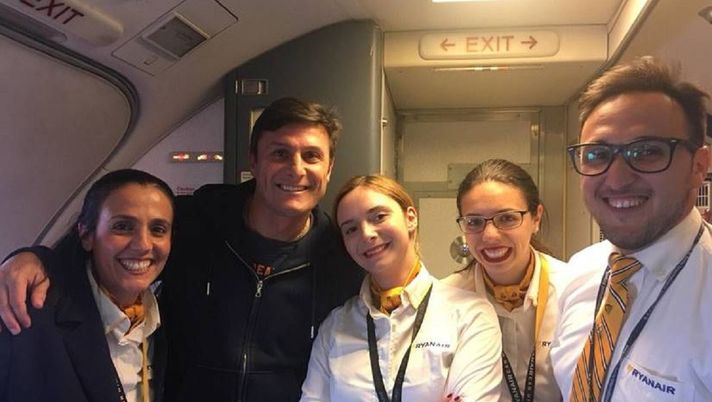 Di viaggi ne fa tanti per lavoro, per ragioni di famiglia, per l'Inter. Il vicepresidente nerazzurro Javier Zanetti stavolta ha utilizzato un volo Ryanair per raggiungere la sua meta e l'equipaggio a bordo dell'aereo ne ha approfittato per un selfie. La compagnia lo ha pubblicato su Twitter, sul profilo italiano dell'azienda, e ha scritto: "Il nostro splendido staff in compagnia del mitico Pupi!".