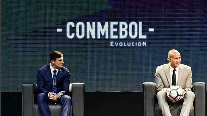 Ieri è stato presentato il nuovo logo del Conmebol, la confederazione sudamericana di calcio che vuole rilanciare la sua immagine, e all'evento - che si è tenuto in Paraguay - era presente anche Javier Zanetti insieme al colombiano Carlos Valderrama e tanti altri ex calciatori come Juninho Paulista e il campione del mondo '94 con il Brasile Mauro da Silva.