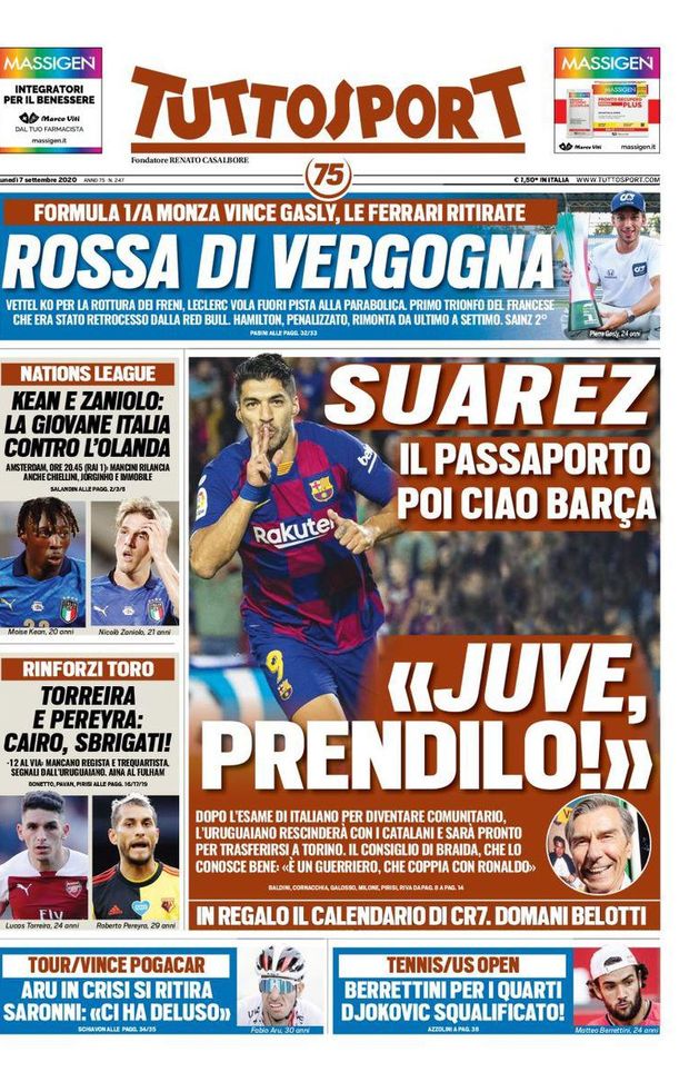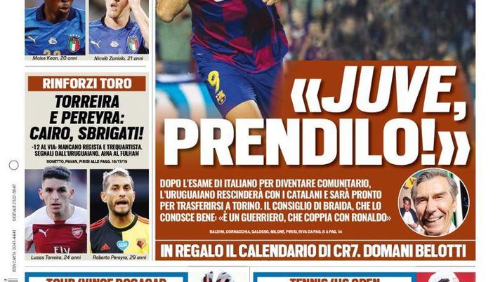 La prima pagina di Tuttosport del 7 settembre 2020